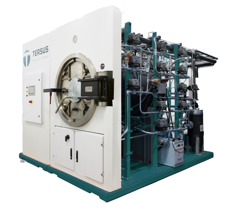 The separated down is now sent through the Tersus Solutions CO2 equipment for cleaning. Using high pressure carbon dioxide in specialized equipment, the down is cleaned in the best and most environmentally way possible. No water is used to clean the down, saving hundreds of gallons water and energy to dry each cycle. CO2 is the best way to clean down. Period.